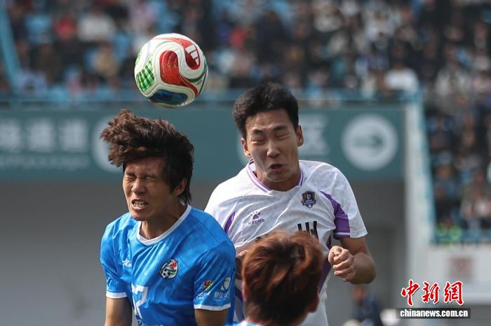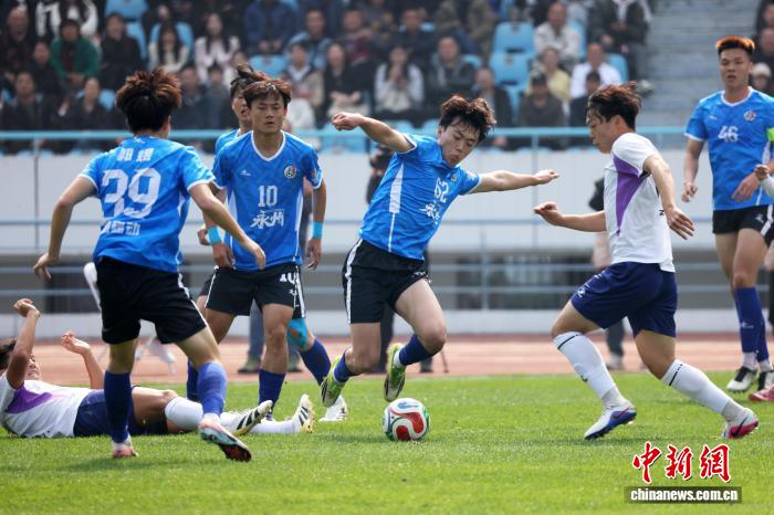 3月25日,江苏常州取湖北永州脚球友情交换赛正在常州奥体重点运动场举办,终究,常州队1比0打败永州队。角逐进程中,两边球员拼劲一切,不雅赛球迷殷勤上涨。图为常州队球员(黑衣)取永州队球员(蓝衣)正在角逐中拼抢。中新社记者 泱波 摄