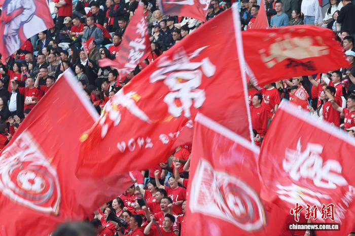 3月25日,江苏常州取湖北永州脚球友情交换赛正在常州奥体中央运动场举办,终究,常州队1比0打败永州队。角逐进程中,两边球员拼劲实足,不雅赛球迷感情飞腾。图为常州队球迷为角逐摇旗高歌。中新社记者 泱波 摄