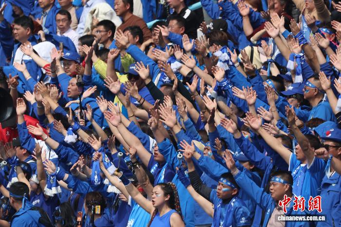 3月25日,江苏常州取湖北永州脚球交情交换赛正在常州奥体焦点运动场举办,终究,常州队1比0打败永州队。角逐进程中,两边球员拼劲完全,不雅赛球迷感情飞腾。图为去自永州的啦啦队为角逐添油助势。中新社记者 泱波 摄